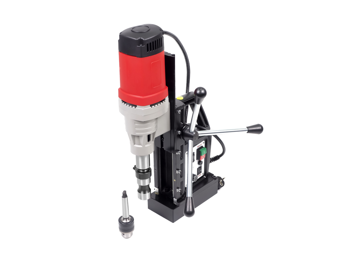 Мощный и надежный магнитный сверлильный станок с диаметром сверления до 50 мм корончатым сверлом.