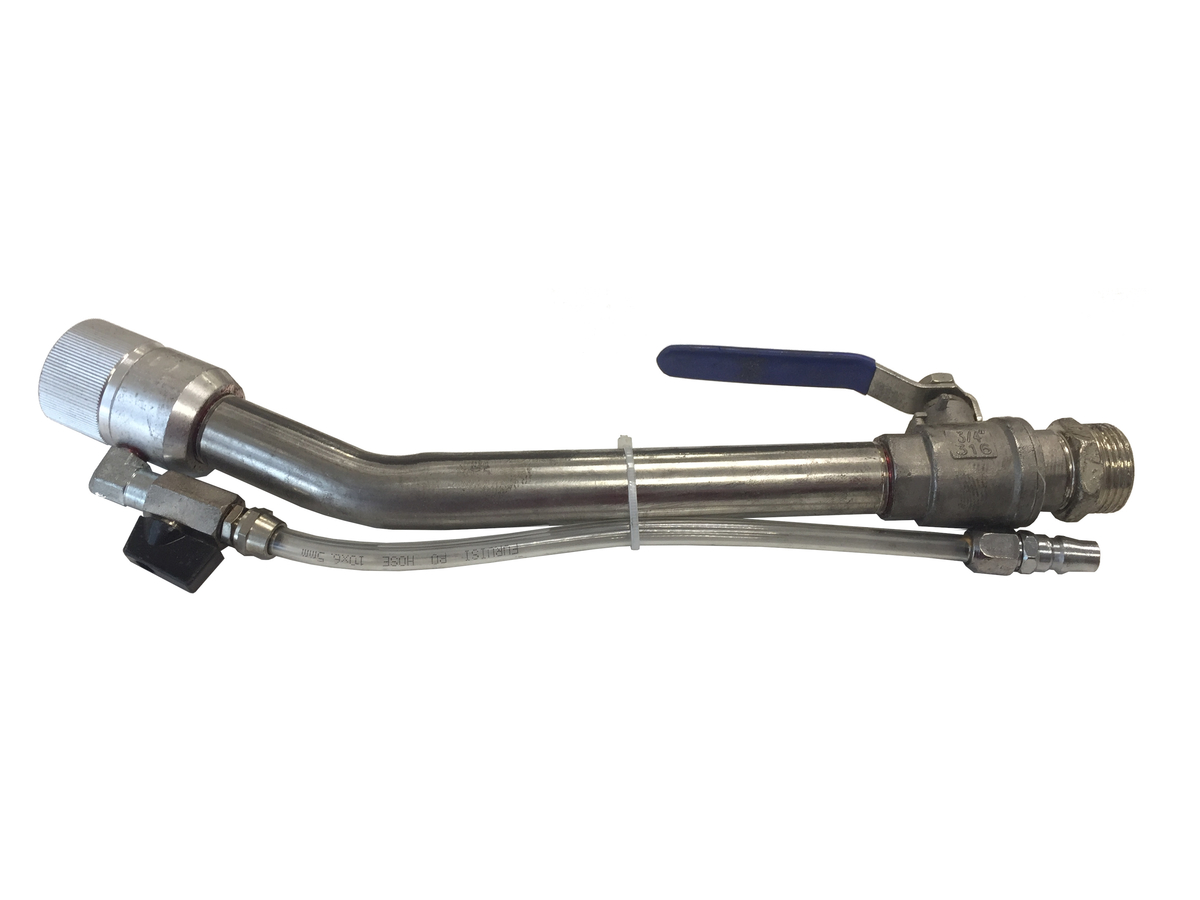 Поставляется в комплекте: с краном, резьба на входе 1", соединение для воздуха быстросъем с вкрученный в кран 1/4" (можно его выкрутить и использовать любое другое соединение), ствол длина – 400 мм, проходной диаметр – 25 мм.