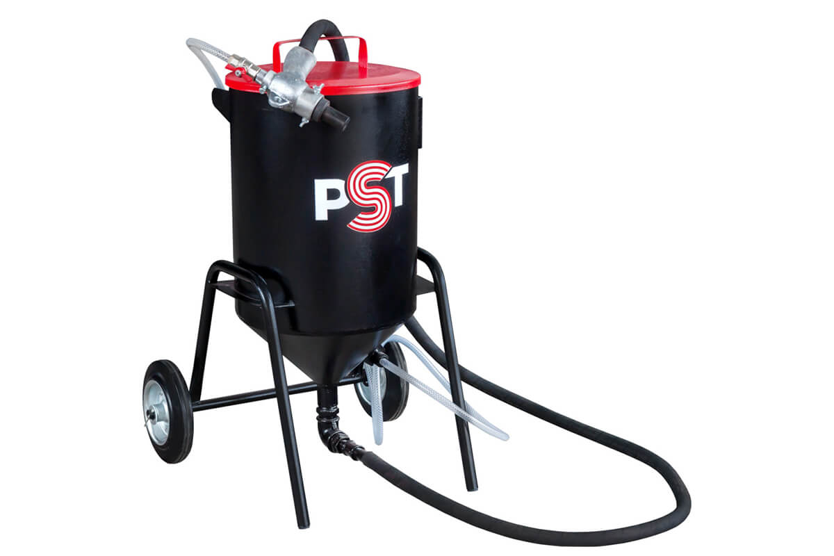 установка, крышка, сито, пистолет инжекторный, рукав абразивный - 2,5 м, рукав воздушный - 2,5 м.